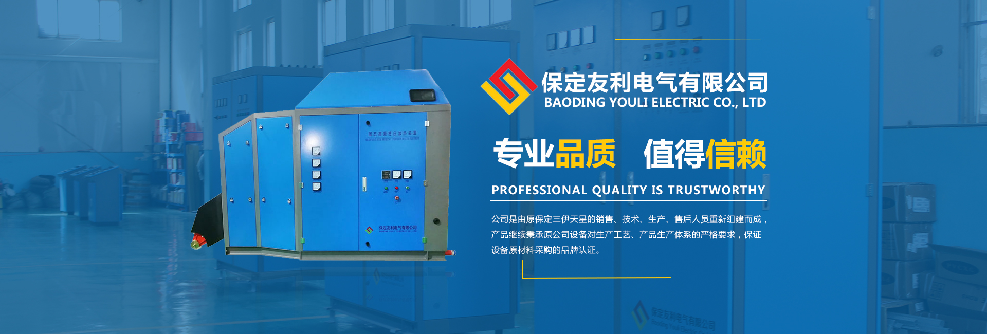 是一家集開發、生產、應用于一體的高科技現代化企業。充分滿足鋼管縫焊、金屬熱處理、金屬熔煉、熔焊等各種感應加熱工藝要求,成為電線電纜、熱帶鋼鍍鋅、熱軋、冷軋等生產線的主要電控設備。